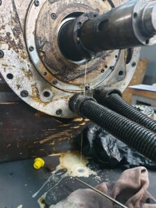 Diese Spindelreparatur ist interessant! Trotz jährlicher Wartung, haben wir die Spindel in einem disaströsen Zustand vorgefunden. Der Wahnsinn das die Spindeln noch trotzdem arbeiten. Schaut euch mal die Bilder an…