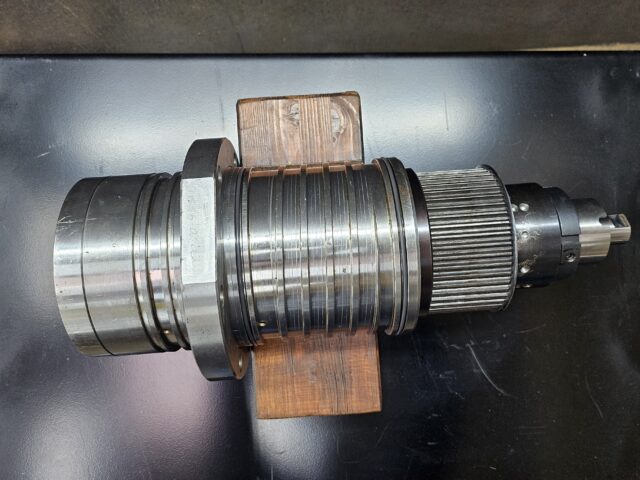 Diese Spindel-Patrone ist aus einer DMG Werkzeugmaschine, mit einer Pneumatischen Löseeinheit. In der Regel wird diese Spindel in den DMU’s 50 T und in den DMC’s Eco eingebaut.